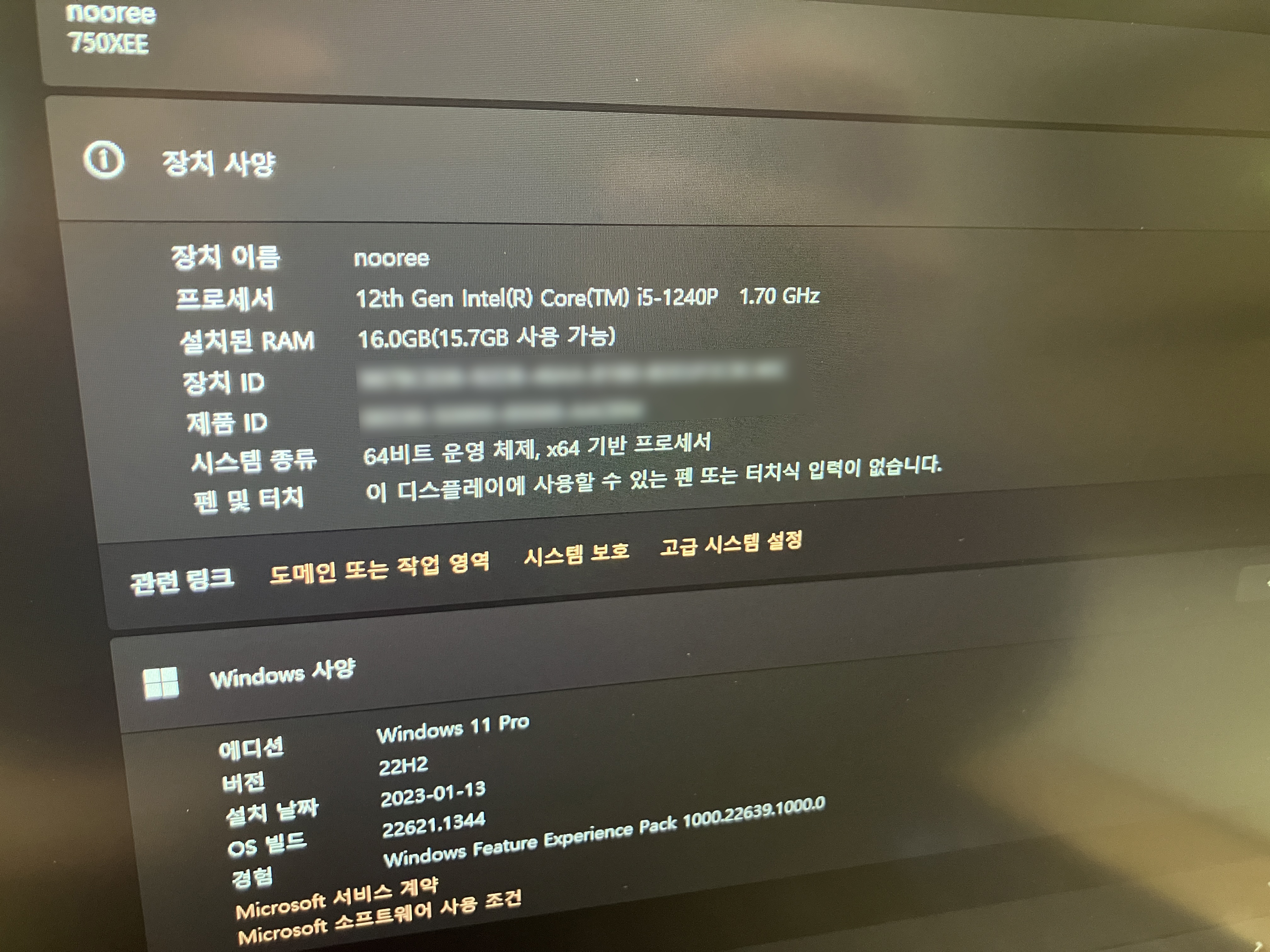 - CPU : Intel 12세대 i5-1240P 프로세서