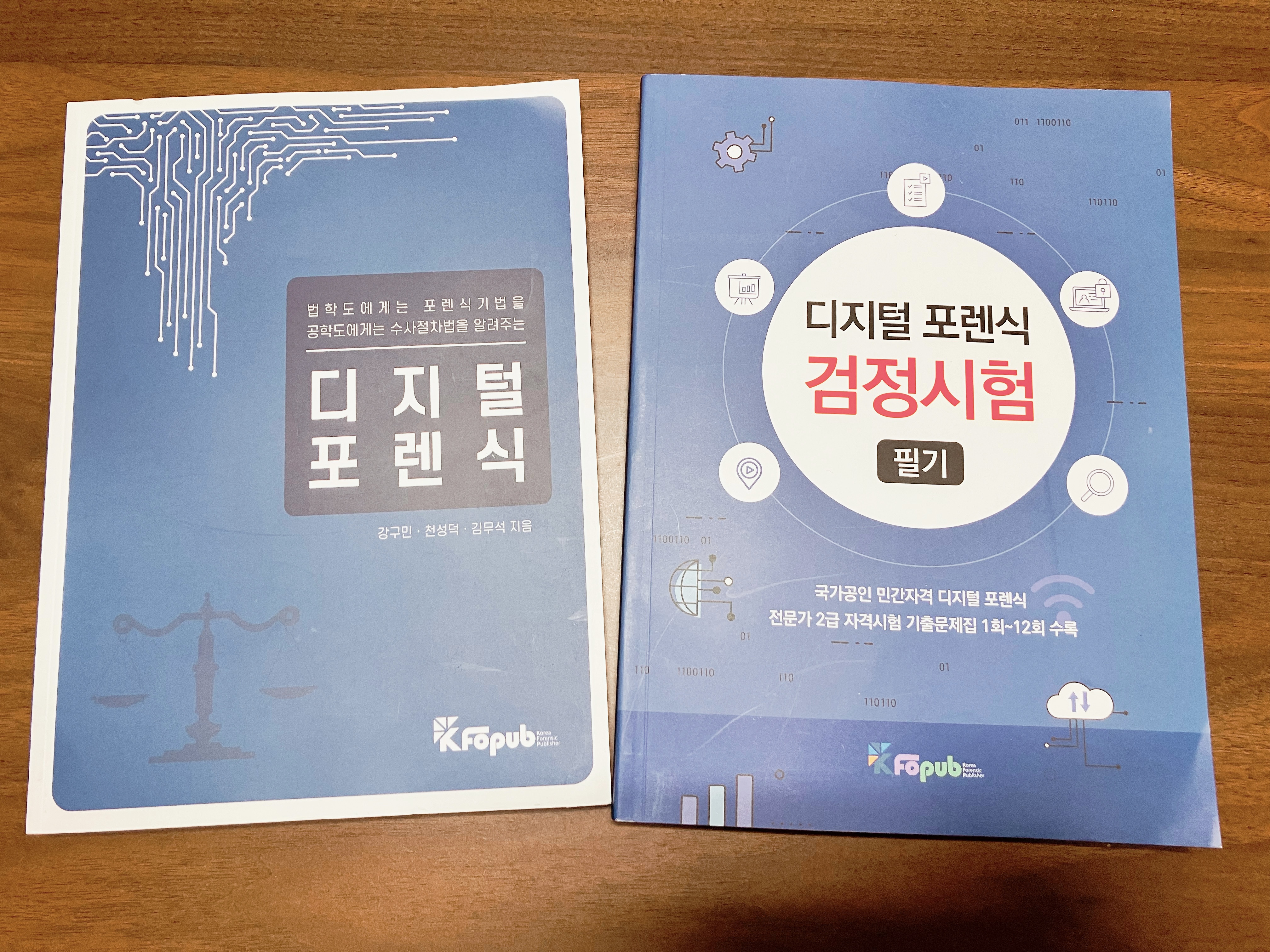 그래서 오늘 급하게 구매한 두권의 책이 아래 사진에 있다. 디지털 포렌식의 관련서는 많은데 기존의 취득자들이 많이들 추천하는 책인거 같다. 물론 시험공부를 위한 책이니까 간략하면서도 쉽게 익힐 수 있는것이 좋겠지. 내용을 보니까 기출문제집인 "디지털 포렌식 검정시험 필기" 책은 설명이나 해설 없이 문제만 모아놓은 책이다. 따로 자료를 찾아봐야 한다. 그리고 "디지털 포렌식" 책은 테크니컬한 부분의 책이 아니라 법적인 처리절차, 법률 등을 설명한 책이다. 필기시험의 일부 과목에 해당한다.
