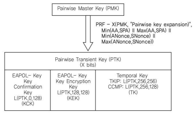 첫 번 째는 하나의 무선 단말과 액세스 포인트 사이의 일대일(unicast) 통신 보호용 대칭 키(PTK, Pairwise Transient Key) 교환을 위한 4-단계 핸드쉐이크 방식이, 두 번째는 액세스 포인트가 다수의 무선 단말과 일대다(broadcast) 통신할 때 사용하는 그룹 키(GTK, Group Transient Key) 교환을 위한 그룹 키 핸드쉐이크(Group Key Handshake) 방식이며, 세 번째는 동일 기본 서비스 셋(BSS) 안에 있는 2개의 무선 단말이 통신할 때 사용하는 단말 대 단말 키(STA to STA key)를 교환하기 위한 단말 키 핸드쉐이크(STA Key Handshake) 방식이다.