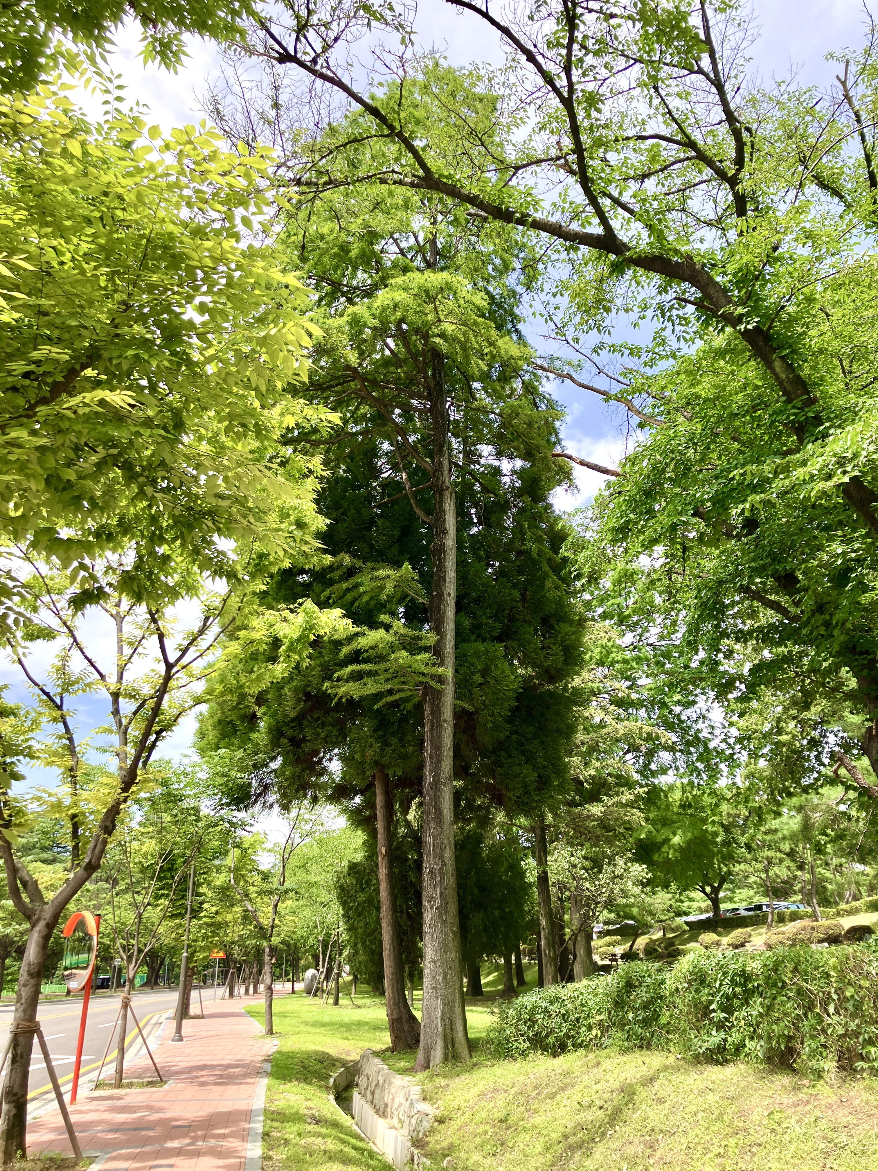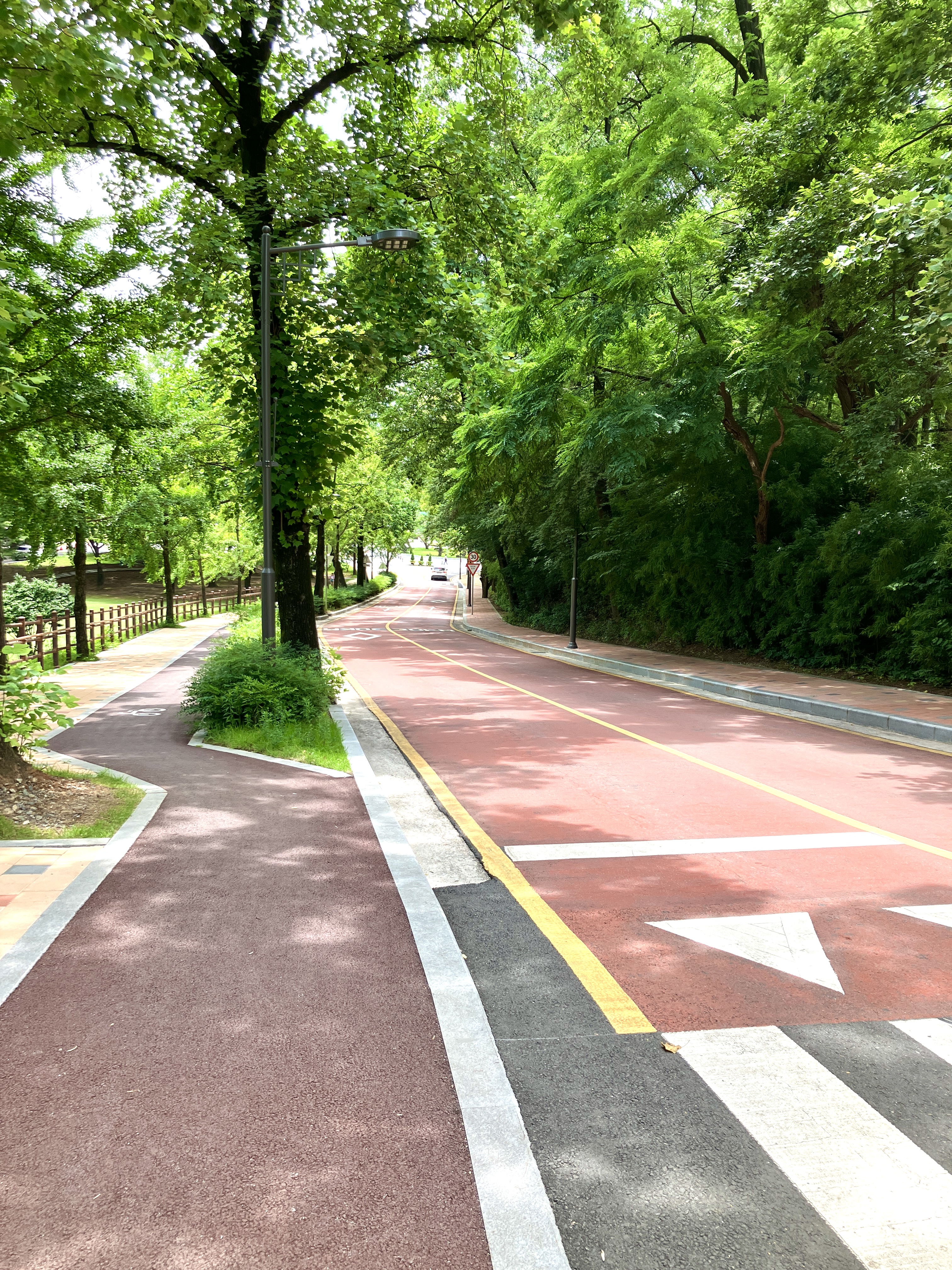 이 길은 잘 포장되어 있는데 그때는 포장은 되어 있었지만 이렇게 컬러풀하지 않았다. 이 길위에서 추억이 많다. 길 양옆의 나무들은 그때의 그 나무들이다. 많이 커진건지 우람하다.. 나만 늙어가네.. 흑흑