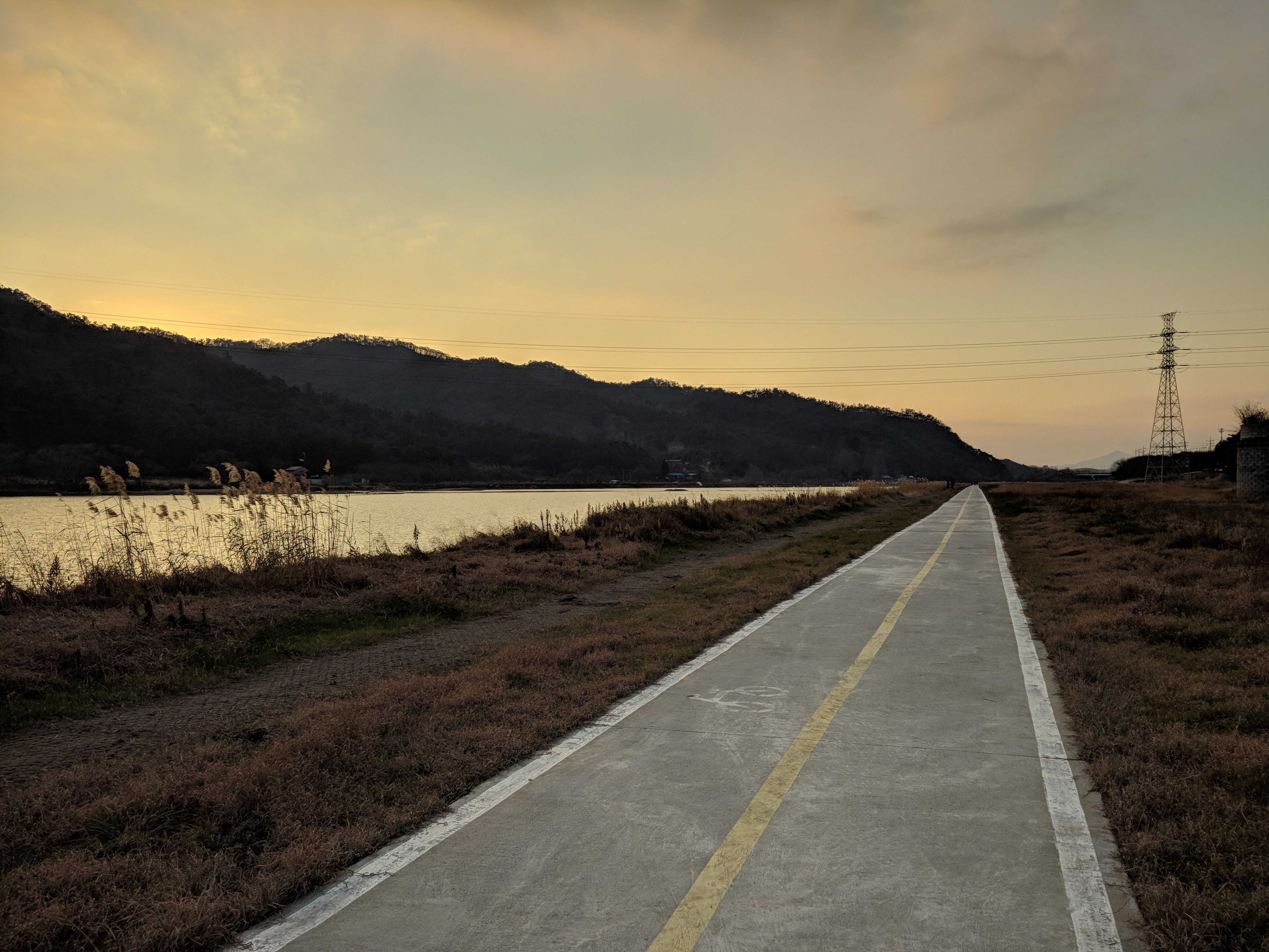 운동삼아서 호남대학교 앞을 지나 동명고 근처까지의 자전거길이 콘크리트로 잘 포장되어 있어 걷고 있다. 코로나 때문에 헬스장이 문닫고 지난해는 공부한다고 여름이후 가질 않아서 요새 주말이면 무등산 아니면 황룡강변에 있다. 그나마 날이 추워서 자주 못가지만..