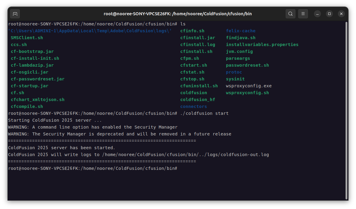 이후에 ColdFusion을 실행할때는 직접 ColdFusion 디렉토리의 cfusion/bin 아래의 coldfusion 명령을 통해 실행하면 된다.