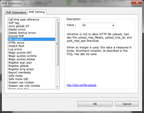 각각의 설정을 위한 버튼 옆 문서모양 아이콘은 메모장으로 수동적으로 직접 환경을 변경해야 하는 경우 해당 파일을 열어줍니다. 위 디렉토리구조에서 언급한 php_uwamp.ini와 httpd_uwamp.conf, 그리고 my_uwamp.ini 입니다.